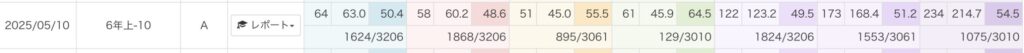 当然、このテストで偏差値50というのは意味が異なる。いわゆる四谷大塚80%圏内とかで言われる偏差値ではない。だから、正直この偏差値の数字に意味はあまりない。aクラスの中での順位を表しているだけだ。偏差値に関してはこちらの記事で書いている。