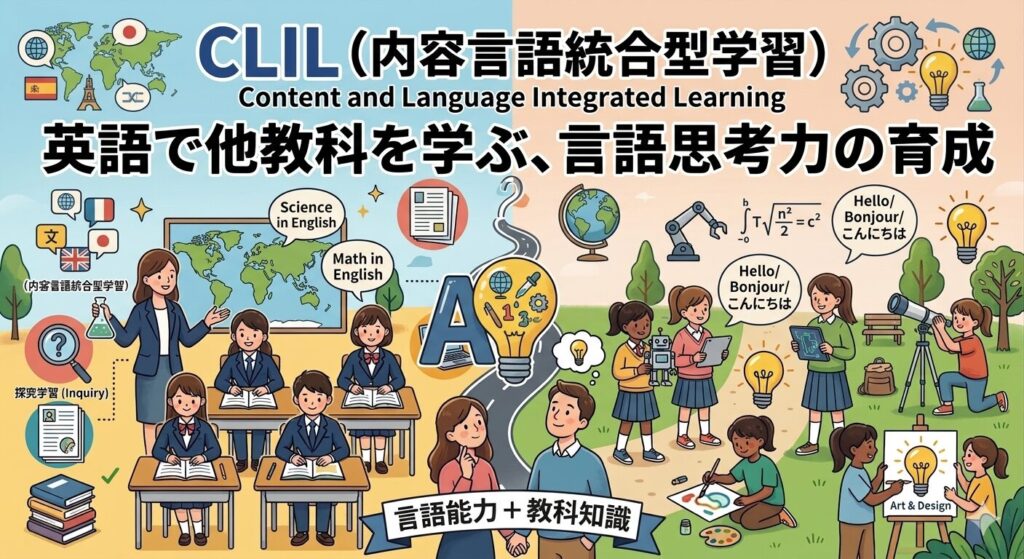 CLIL(クリル)は、英語(または他の外国語)と、数学、理科、社会、芸術などの「教科内容」を統合して学ぶ教育アプローチです。「言語能力」と「教科知識」の双方を同時に高めることを目的とします。