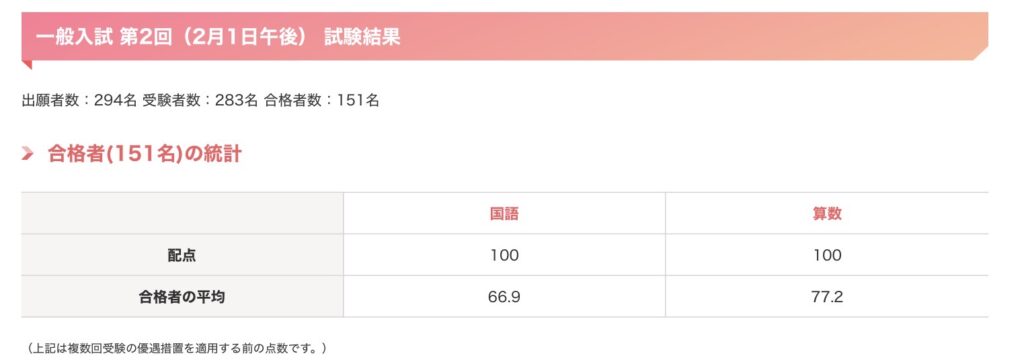 2回目の受験者283名に対して合格者151名なので、実質倍率は1.9倍