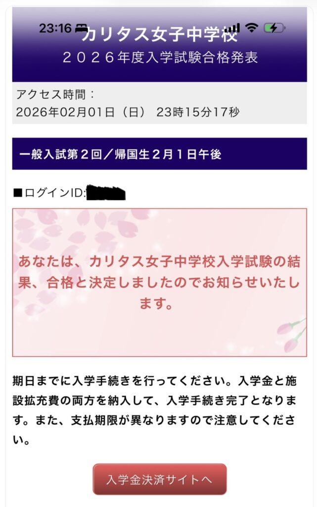 カリタス女子 合格発表