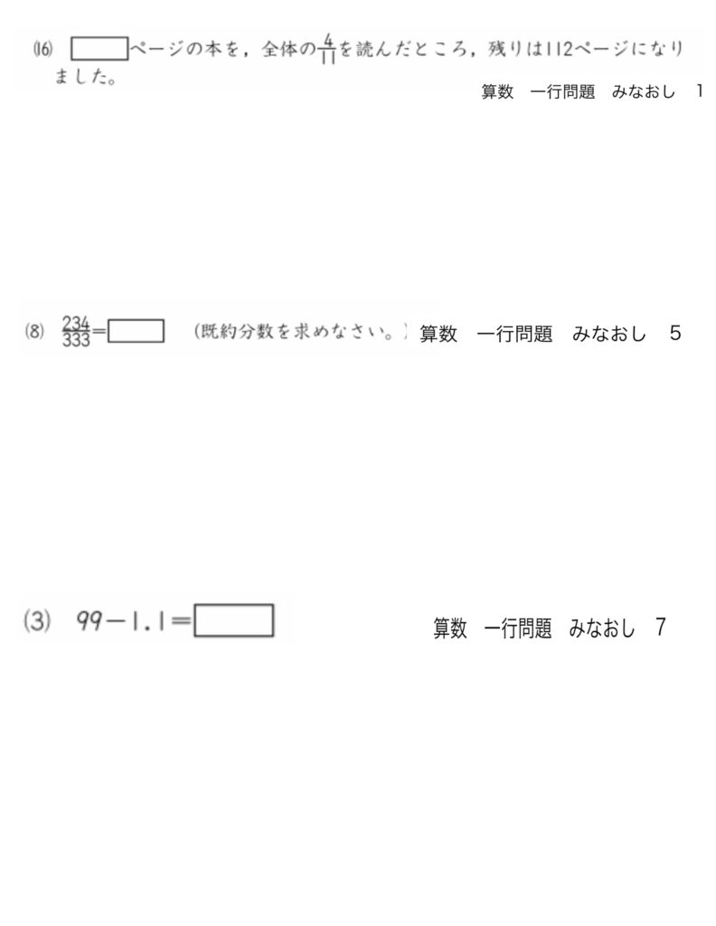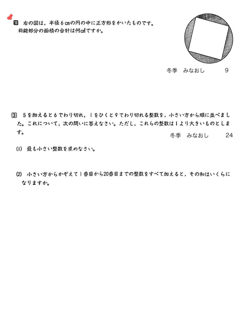 ちなみの冬休み前に解かせていた、見直し問題テストはこんな感じだ。