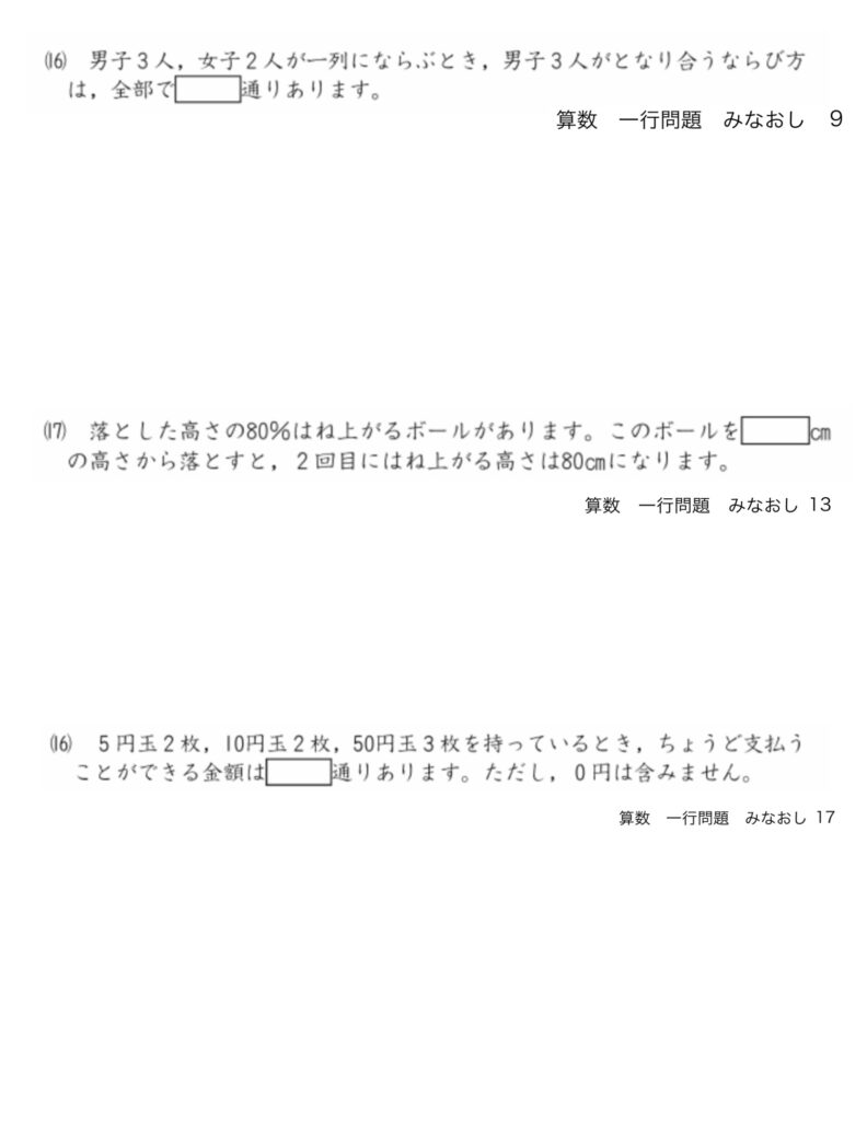 算数に関してはいろいろ単元が多く計算問題から文章題、立体や平面などの図形問題ジャンルにわたる。それぞれに基礎問題があり、標準問題、応用問題、発展問題と難易度が上がっていく。大手塾ではレベル別にテキストを作成していることが多い。