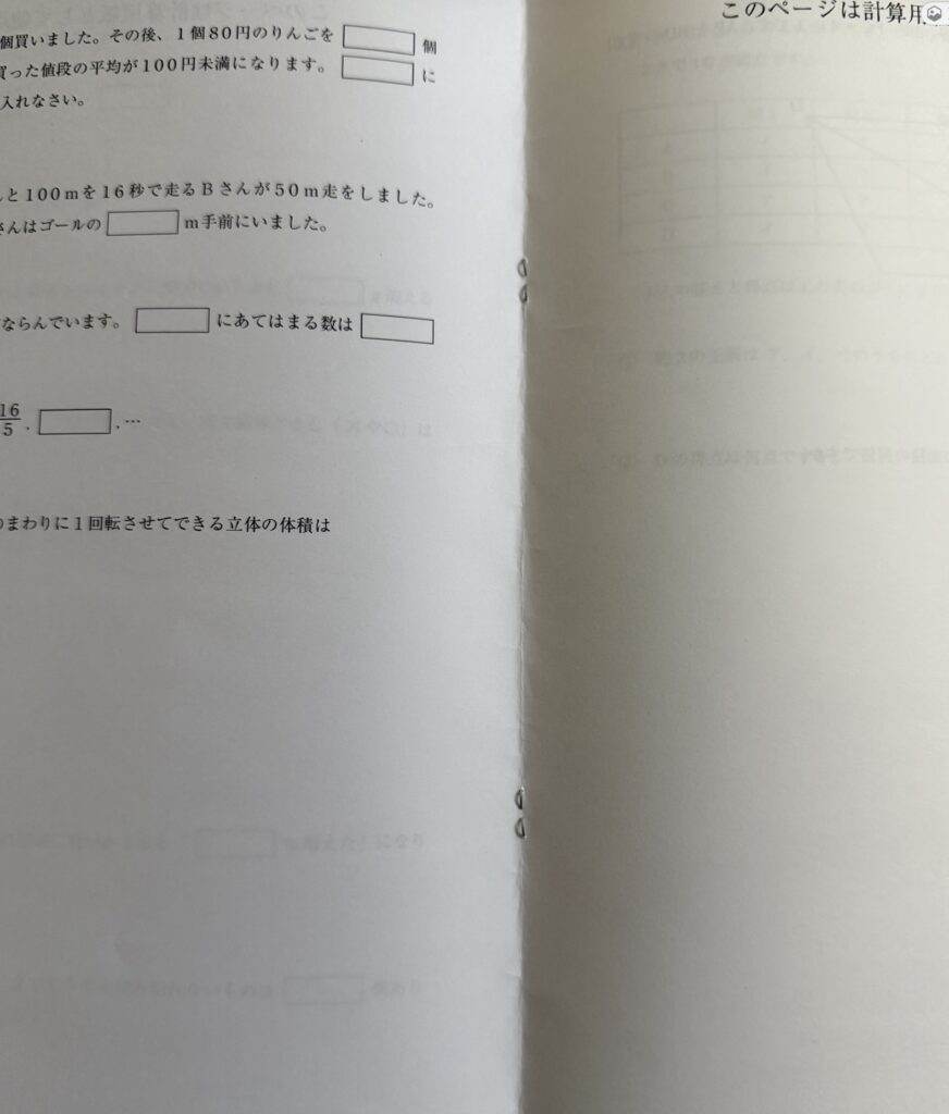 多くは表紙の裏は空白か、次のページから問題が始まりますとか書いてあったりします。ここまで来たら雰囲気重要なので、なるべく実物に近づけていきましょう。