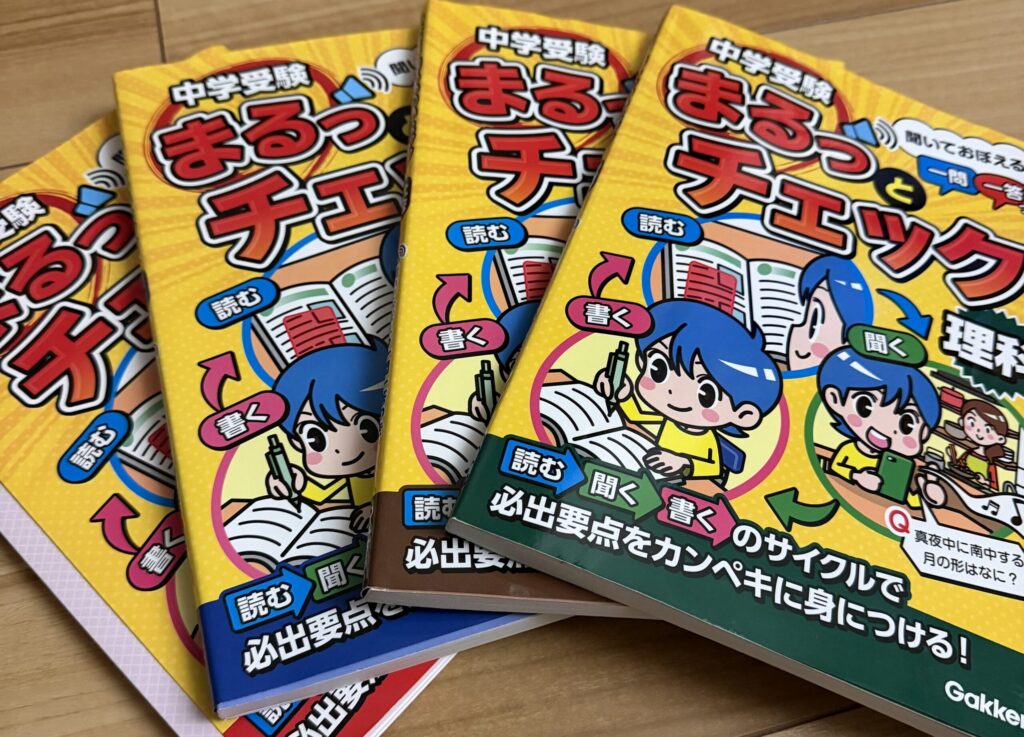 今回はまるッとシリーズで4科目まとめて紹介しました。全体的に基礎的なまとめの立ち位置の問題集かと思います。特に音声での一問一答がとても使いやすかったのでお勧めです。私のイメージではちょうど四谷大塚で偏差値50近辺くらいで一番使いやすいのではないでしょうか。逆に55から上だと物足りないと思いが、基礎の確認などに使うことは可能だと思います。