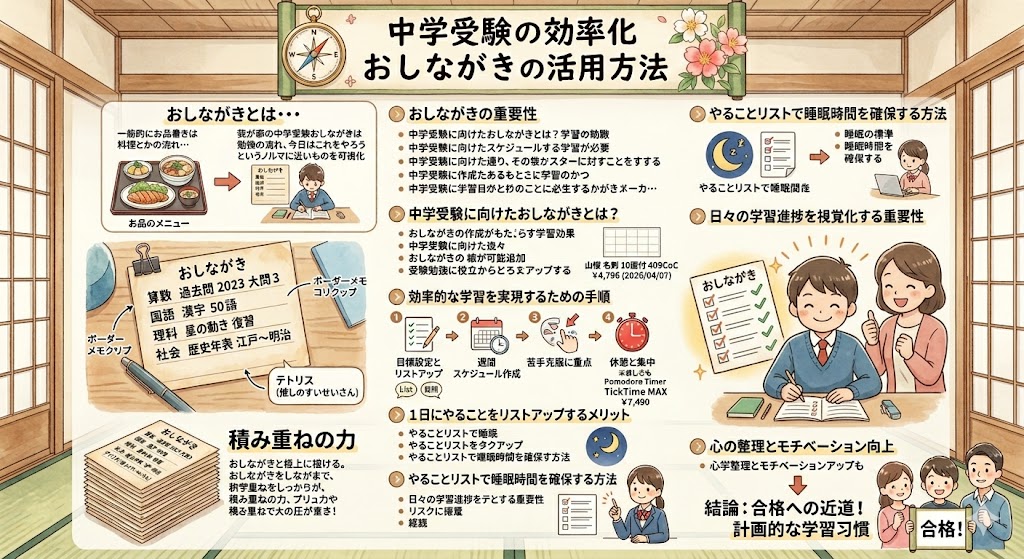中学受験に向けたお品書きは、効果的な勉強法や計画を立てる上で非常に重要である。